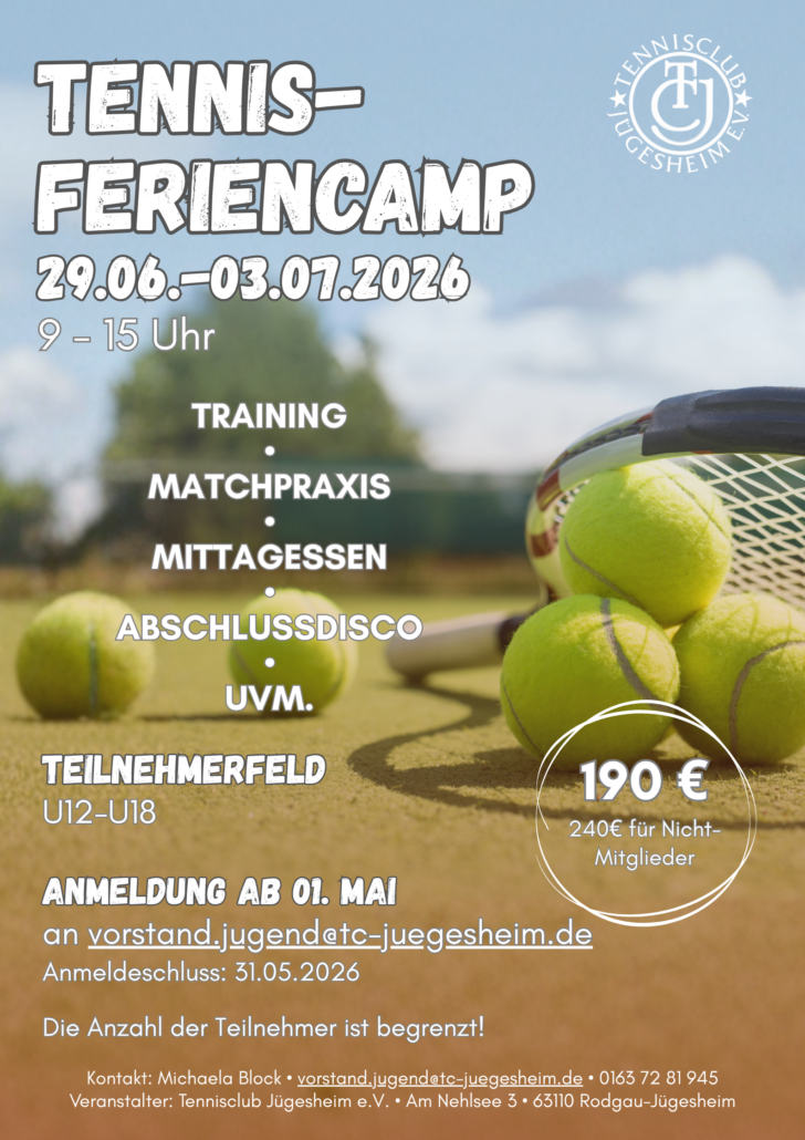 📩 Jetzt schnell anmelden: www.tc-juegesheim.de